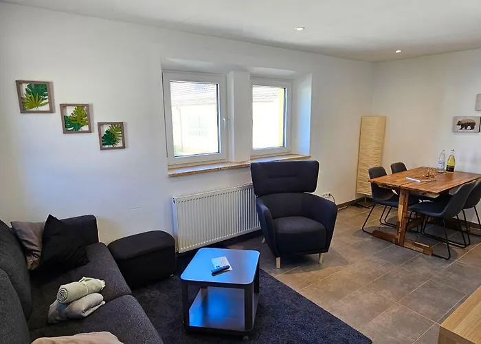 Kiwihof Ferienhaus Sudpfalz Villa tilbyder 1 værelser med udsigt over den indre gårdhave og ligger 7 km fra Stiftskirche. Der er også et skrivebord, et opholdsområde og tv, et fuldt udstyret køkken med kaffemaskiner/tekedler, et køleskab og en ovn.